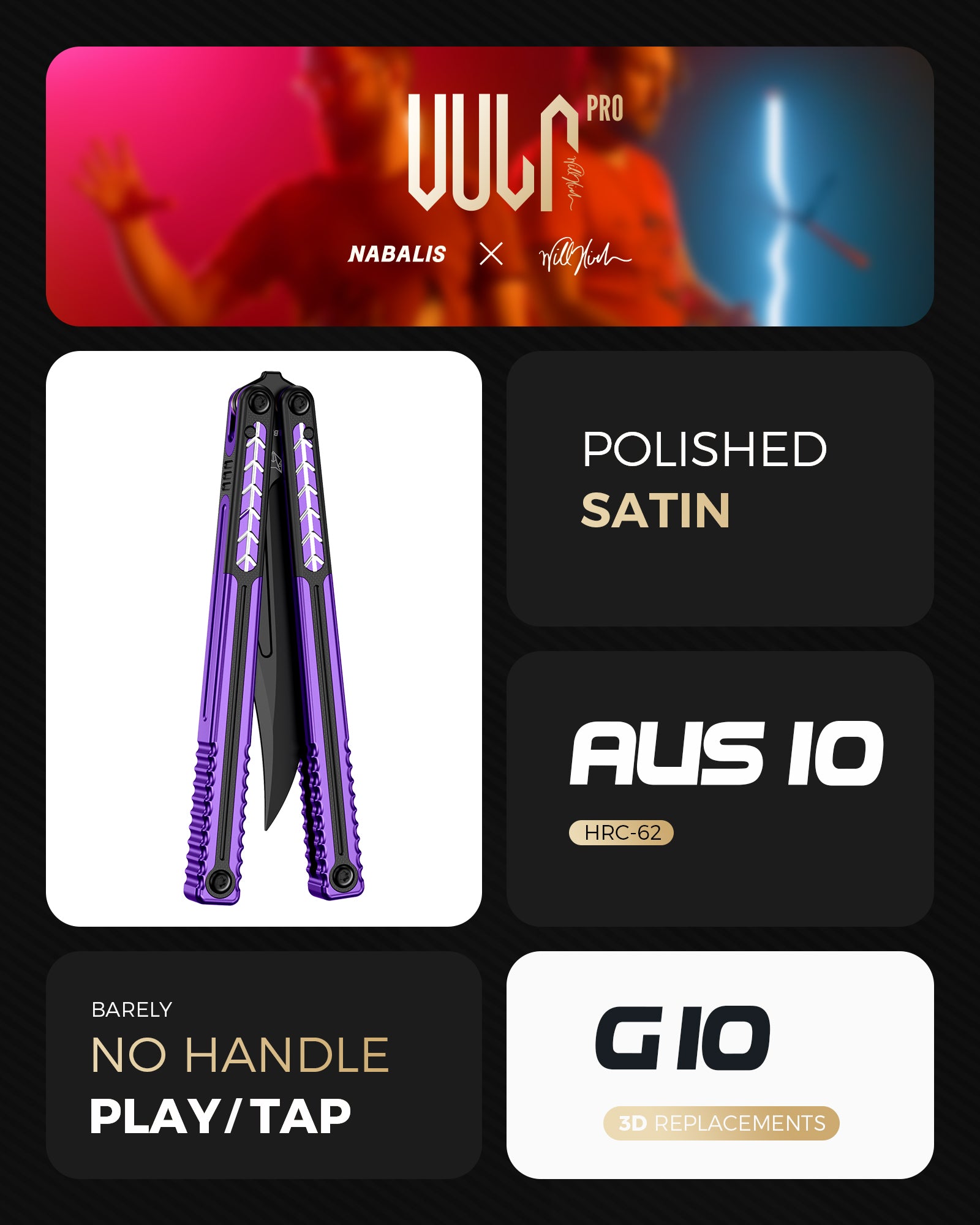 $16 OFF Blemished Vulp Pro Balisong with False Edge G10 & 7075 AL Handle