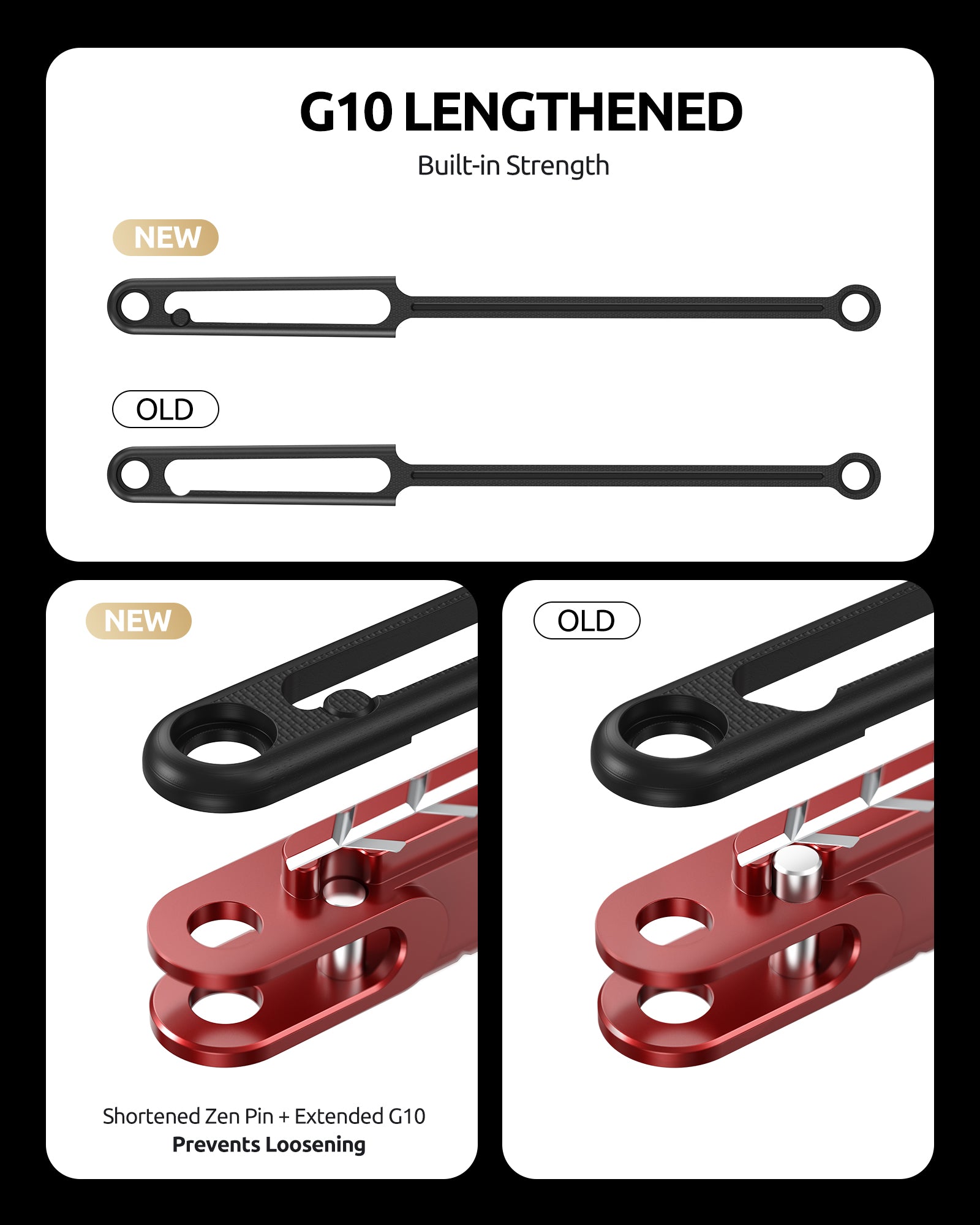 Handle material upgraded from 6061 AL to much more durable 7075 AL with G10 inlays for substantially improved grip and modularity.
