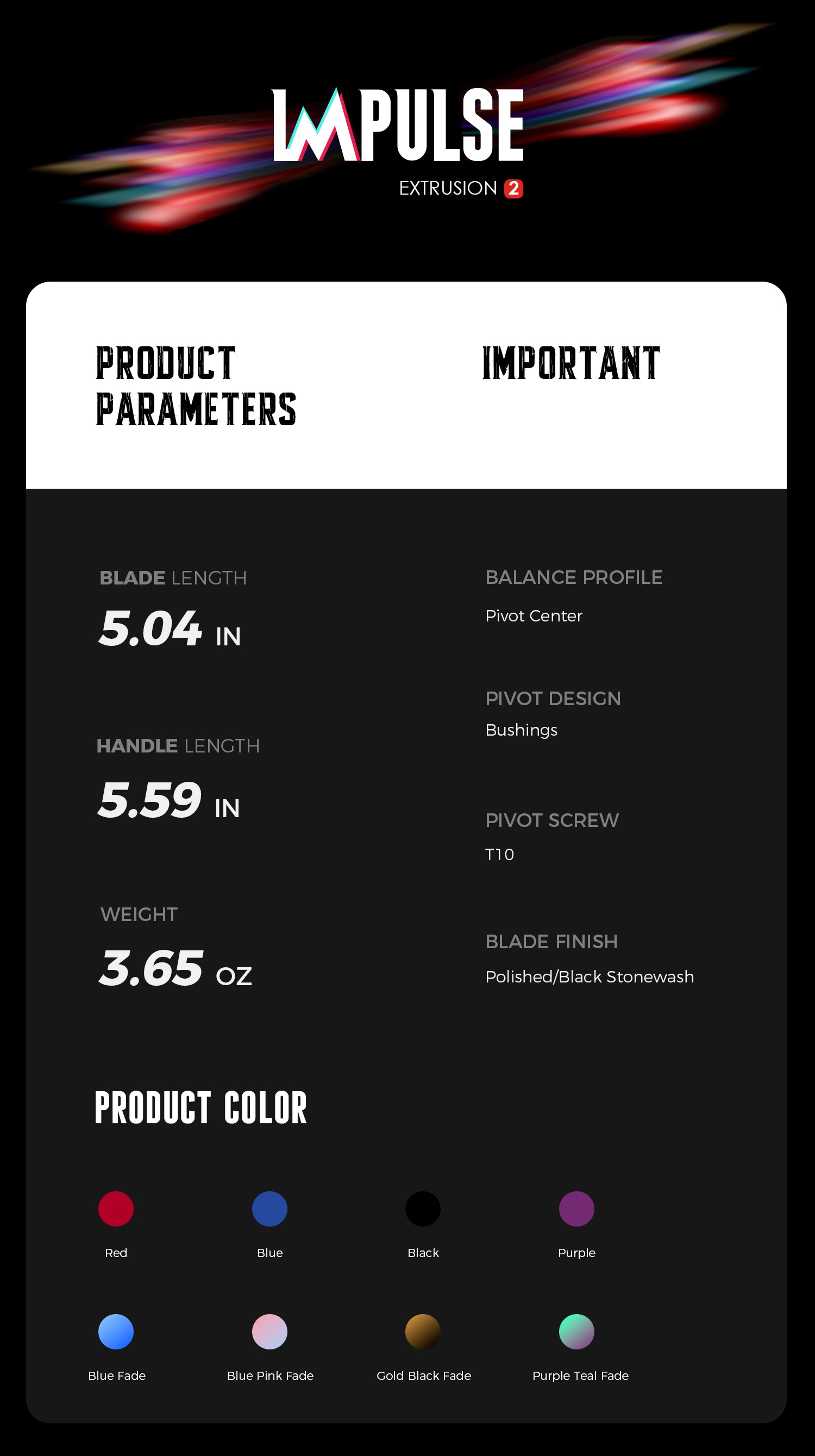The Impulse Balisong with False Edge is available in two handle finish types: