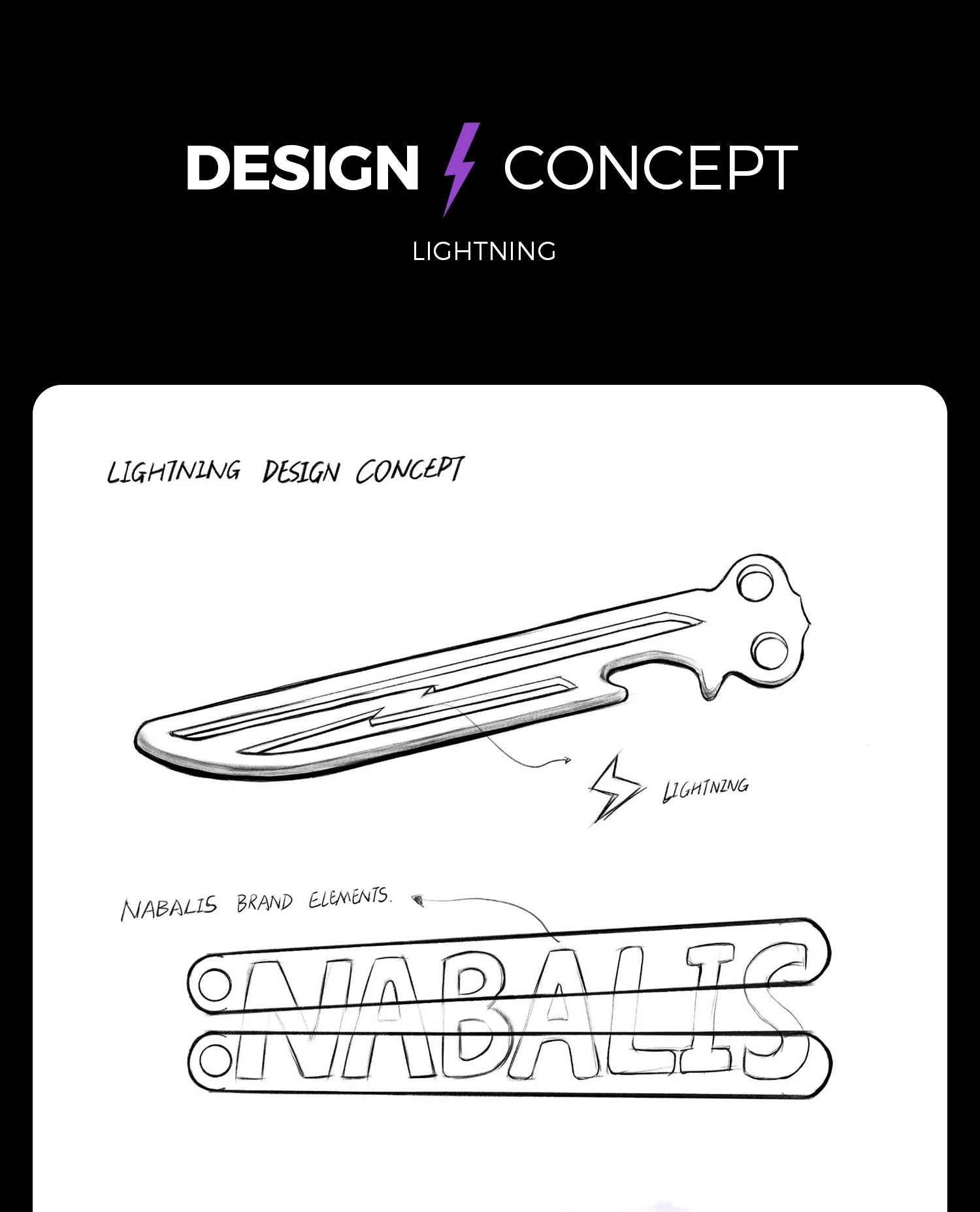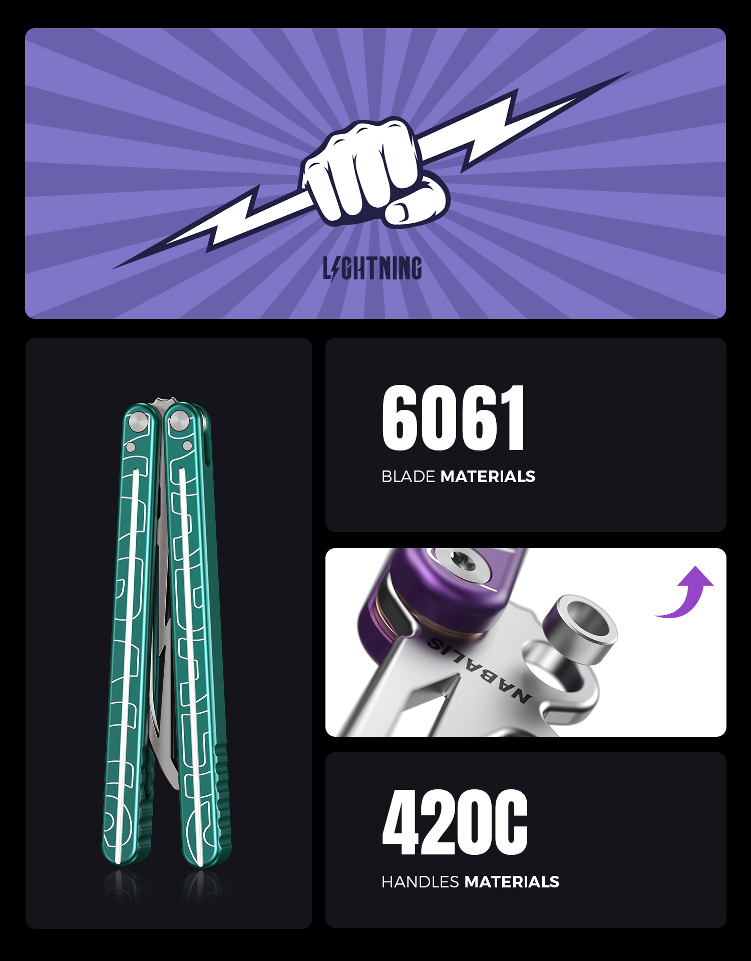 But we didn’t stop there. Listening to the community, we’ve upgraded the Lightning with a full bushing pivot system—bringing smoother spins, tighter tolerances, and virtually no tap or play. The design keeps its signature aluminum channel handles and engraved “NABALIS” grip, ensuring it’s still comfortable and secure for long flipping sessions.