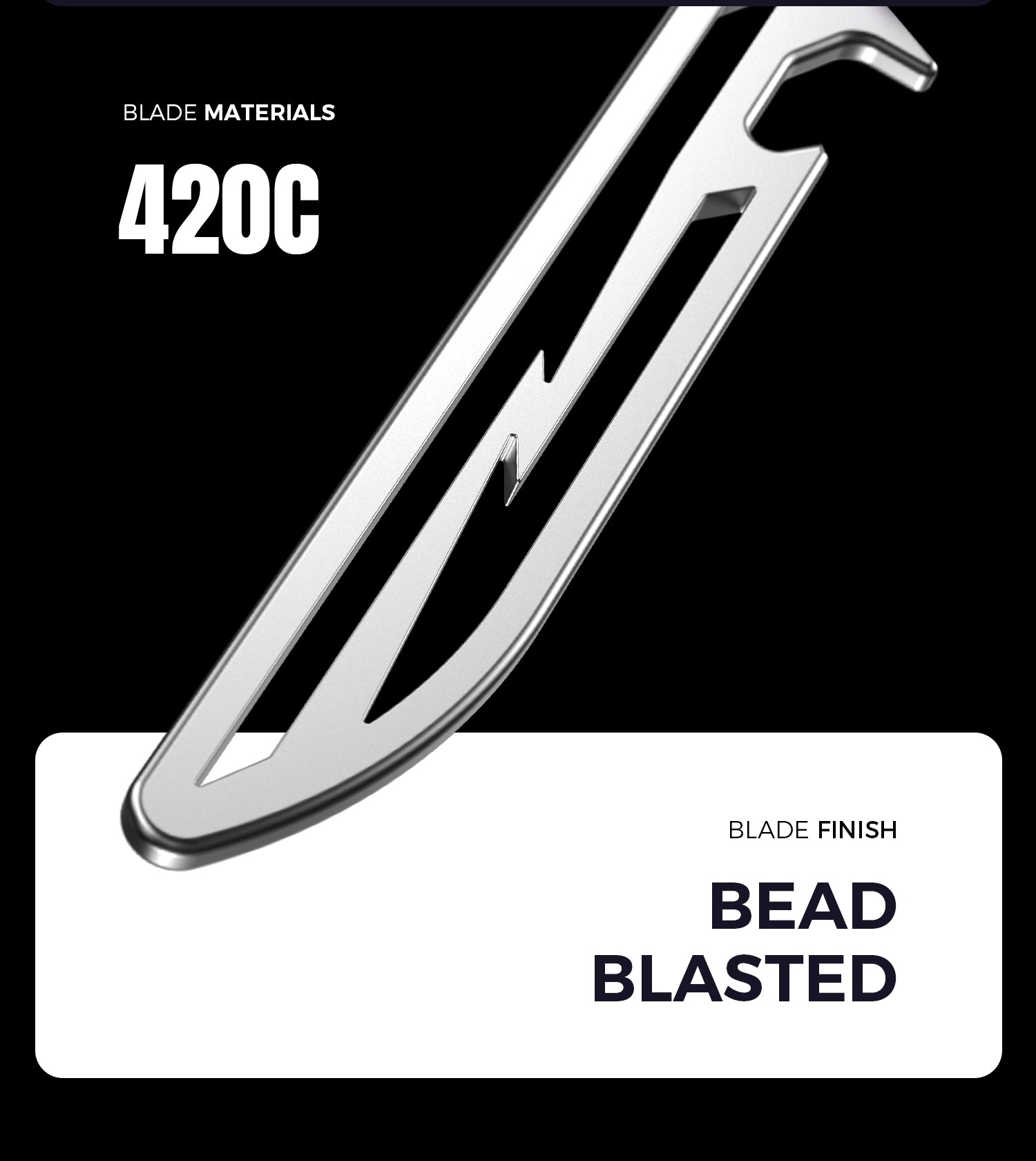- 비드 블래스트 처리된 420C 열처리 스테인레스 스틸 과 탄토 블레이드.