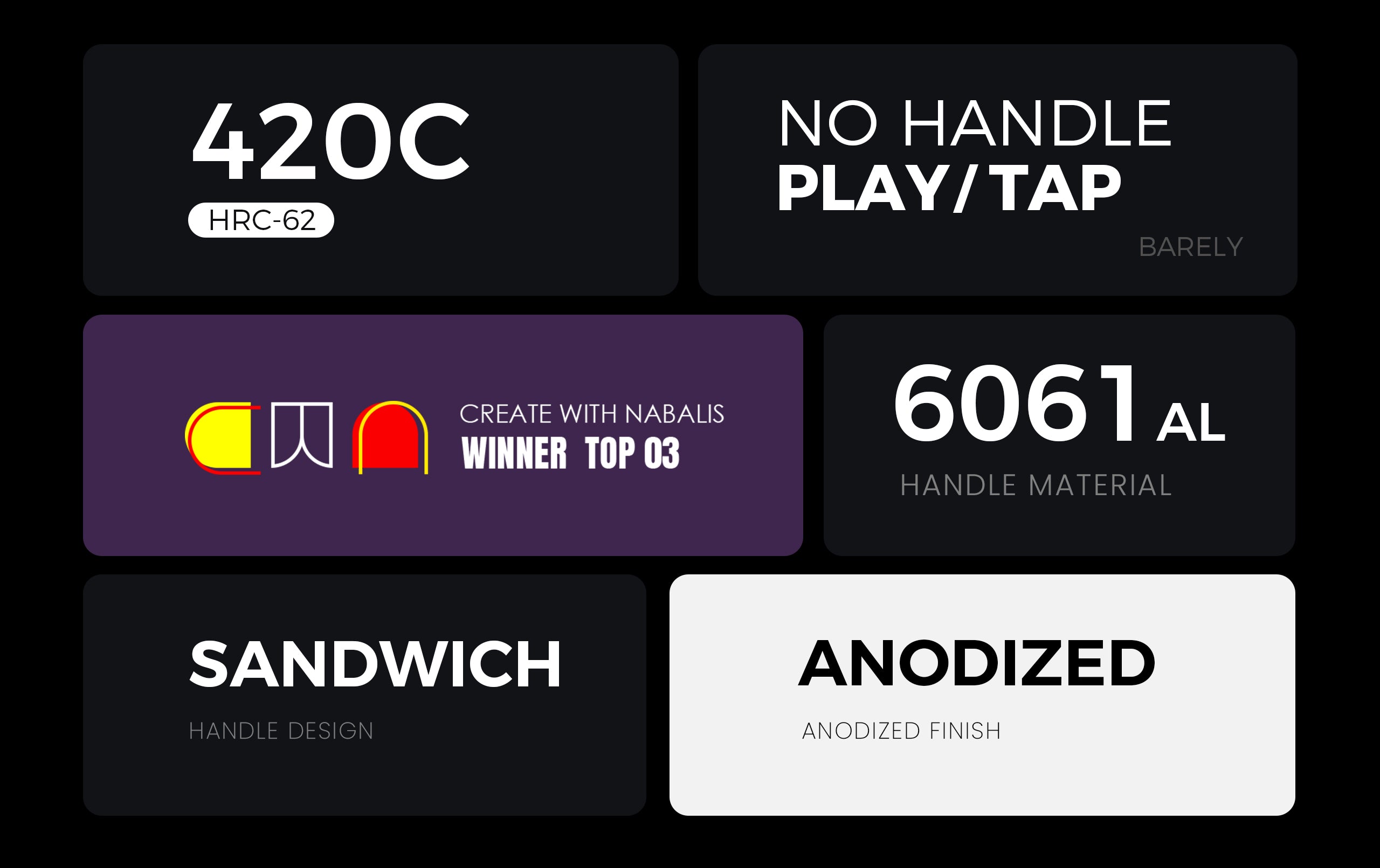 - Handle Design: Sandwich