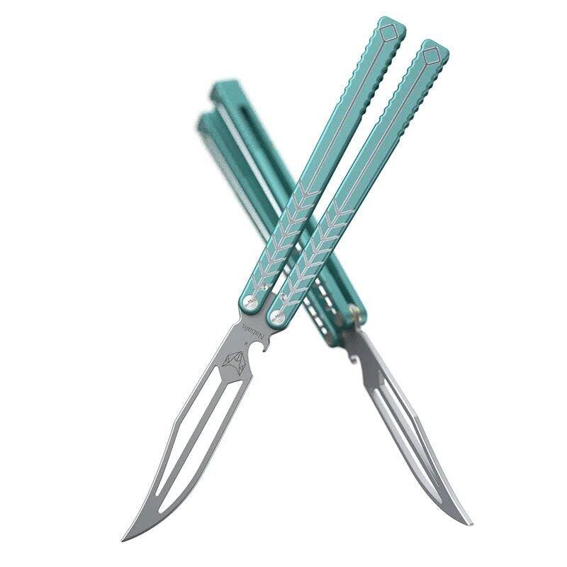 Nabalis products are balisong "trainers", NOT real knives. The "blade" in the pictures is dull and only meant to simulate the weight and feel of a real blade. These trainers are NOT weapons and are intended for recreational and educational purposes ONLY.